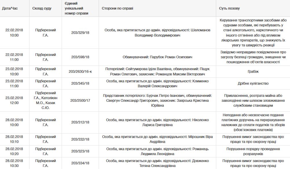До конца февраля в расписании Подберезного еще 7 судебных заседаний.