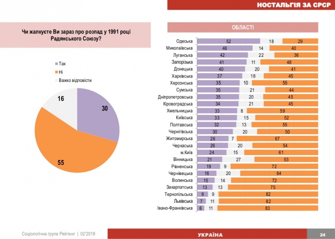 При этом 55% респондентов не испытывают ностальгии по СССР.
