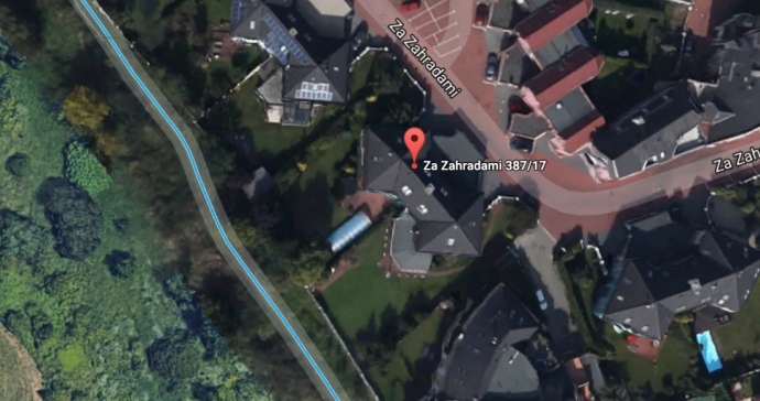 Сам Александр Тимошенко прописан в Праге на ул. Za zahradami 387/17.