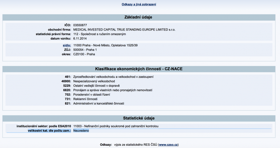 Летом 2017 года все перечисленные юрлица изменили прописки и сейчас находятся по одному адресу: Opletalova 1525/39, Nové Město, 110 00 Praha 1.
