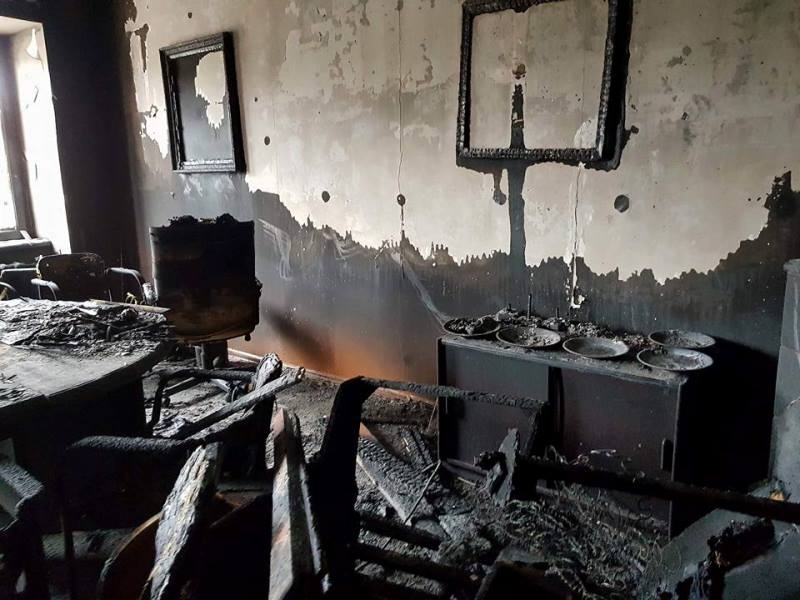 В результате взрыва разбились оба окна офиса, а внутри начался большой пожар, который "уничтожил полностью весь офис, все помещения 2-этажного дома".