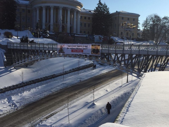 Конфликт с медвузом: на аллее Небесной Сотни появился провокационный баннер
