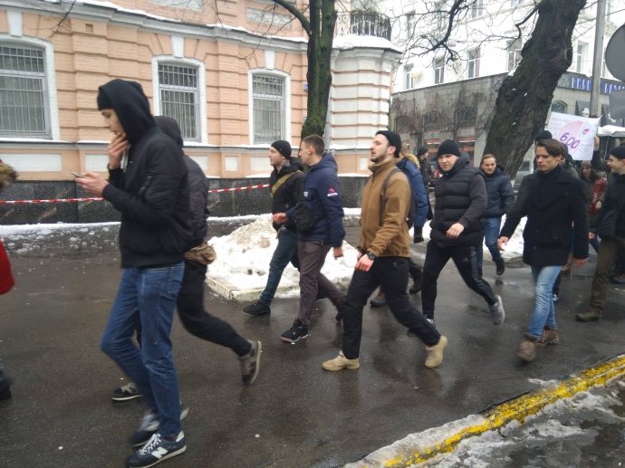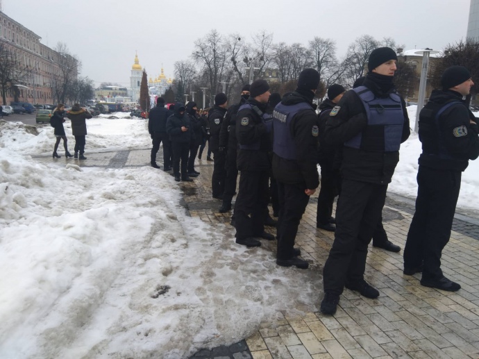 Возле Михайловской площади усилены патрули полиции. Стычка во время шествия могла возникнуть между участниками марша и представителями националистических движений, однако полиция быстро разняла стороны.