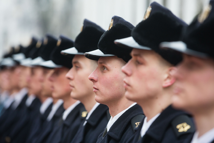 Во время салюта президентам почетного караула на земле оказалась шапка одного из военных.