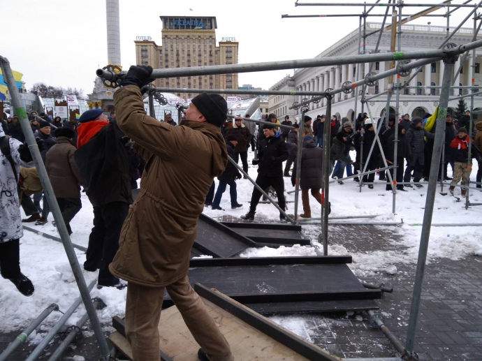 Накануне поздно вечером полиция задержала активистов "Руха новых сил", которые хотели установить сцену на Майдане Незалежности для проведения акции 18 марта.