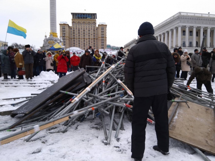 Как сообщает корреспондент УП, по состоянию на 14:30 митинг на Майдане завершился. Металлические конструкции полностью разобраны, люди расходятся.