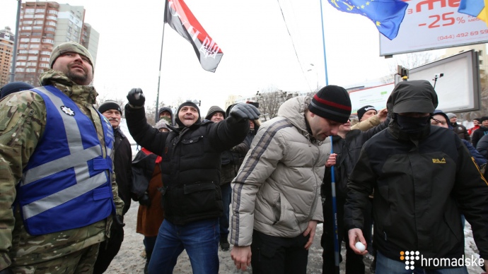 В ходе акции некоторые ее участники начали поджигать фаеры, а также бросать в сторону корпусов консульства яйца, снежки и бутылочки с зеленкой.