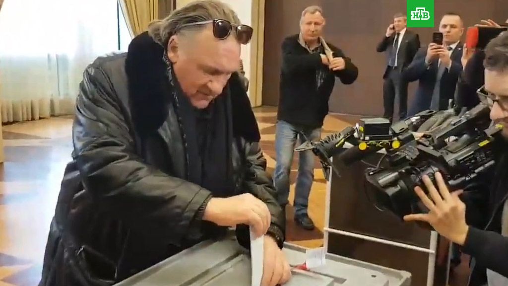 Французский актёр Жерар Депардье, имеющий гражданство России, проголосовал на выборах президента РФ на избирательном участке в посольстве в Париже.
