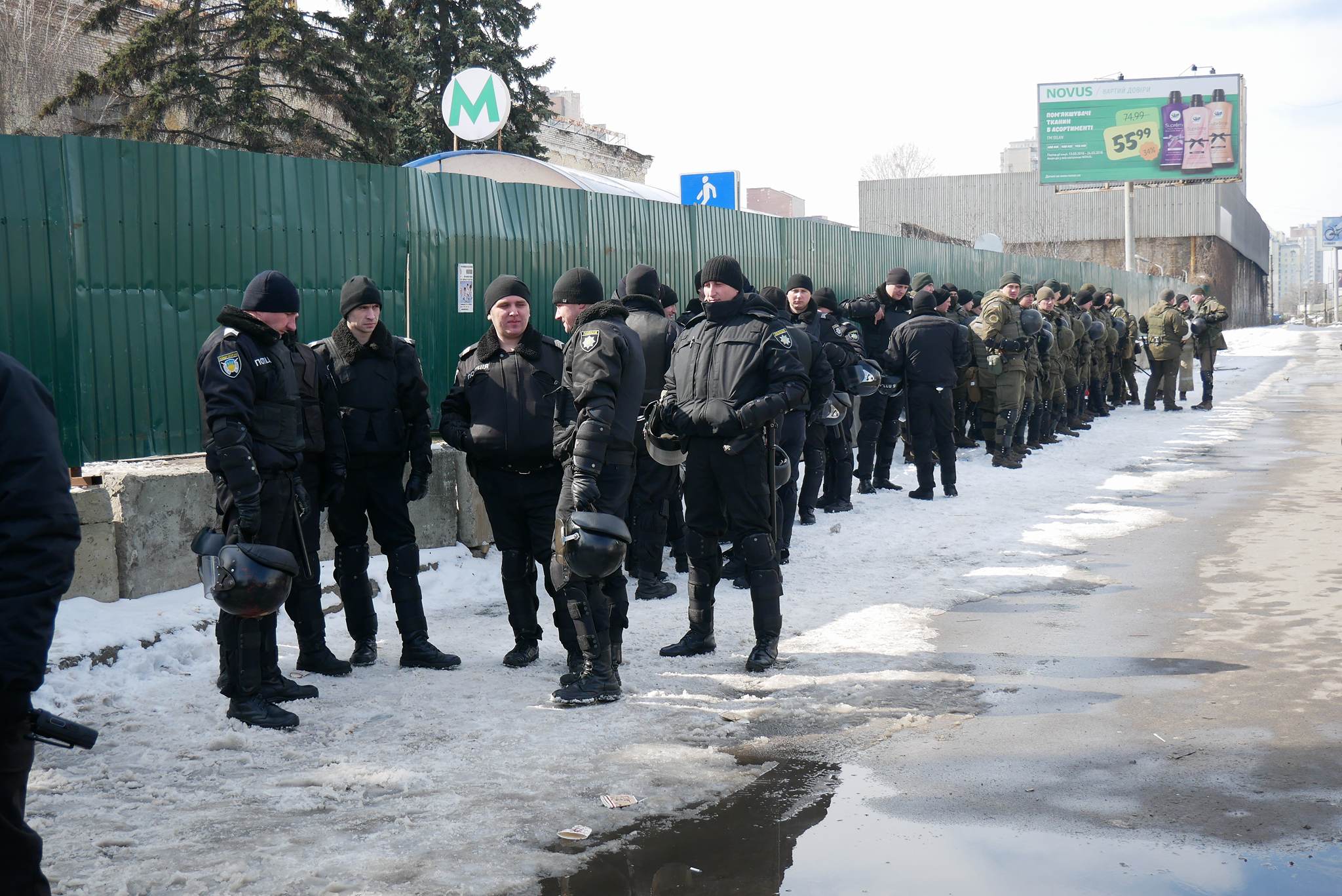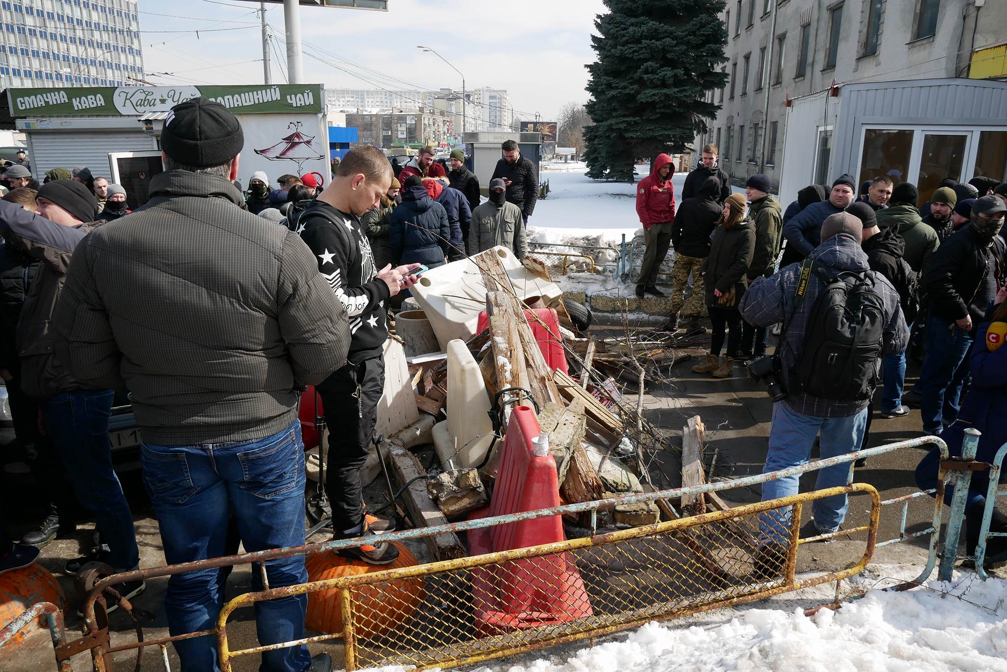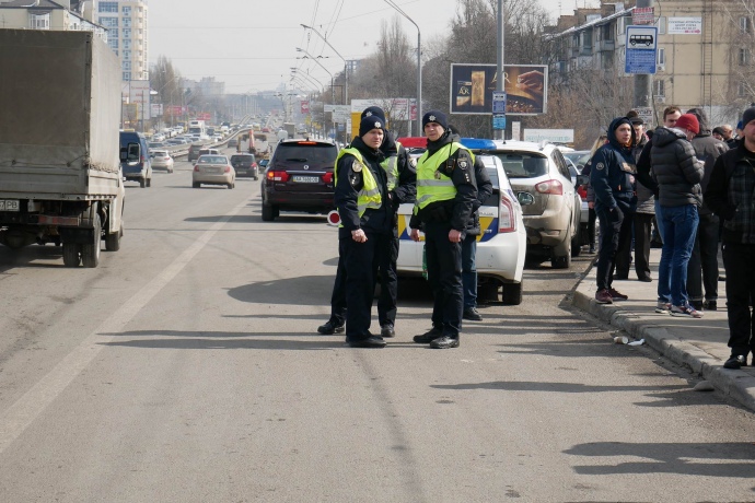 Позже представители "Нацкорпуса" перекрывали Проспект Победы примерно на полчаса из-за того, что их не допускали на территорию завода.