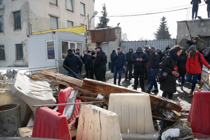 По его словам, утром "неизвестные люди в полицейской форме" пришли к воротам территории, они не предъявили никаких удостоверений. Сломав ворота, они зашли внутрь, где расположены общественные организации, в том числе Нацкорпус.