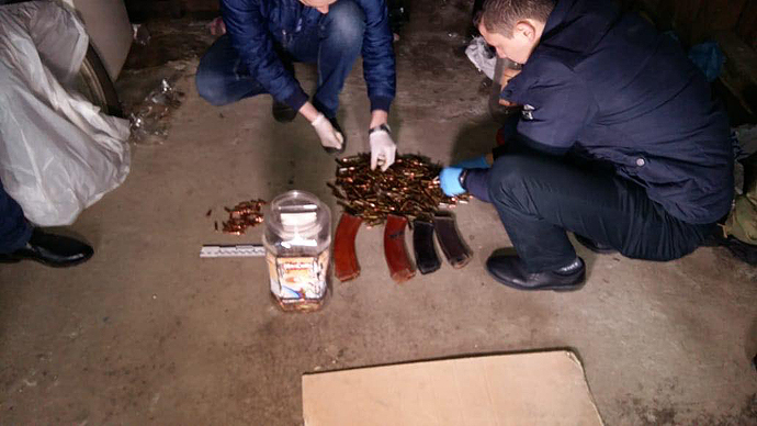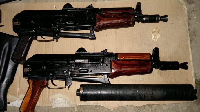 Правоохранители изъяли 3 револьвера, пистолет, снайперскую винтовку, два автомата Калашникова, два глушителя, ручной пулемет Калашникова, две гранаты и сотни патронов различного калибра.