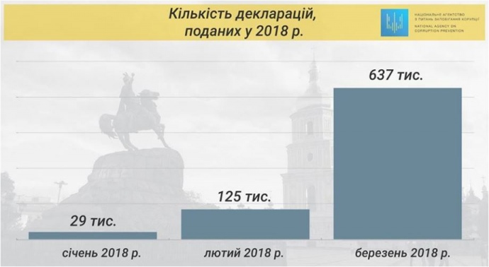 Такие данные обнародовала пресс-служба Национального агентства по противодействию коррупции по состоянию на 00:00 1 апреля.