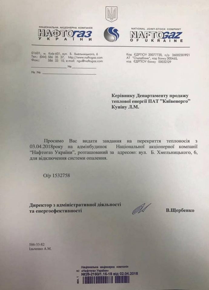 НАК "Нафтогаз" обратился к ОАО "Киевэнерго" с просьбой отключить его офис в столице от теплоснабжения и призвал другие компании участвовать в такой инициативе.