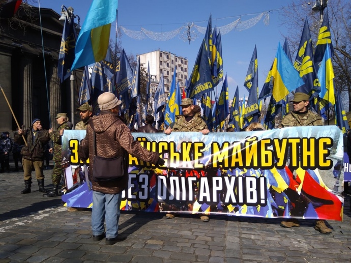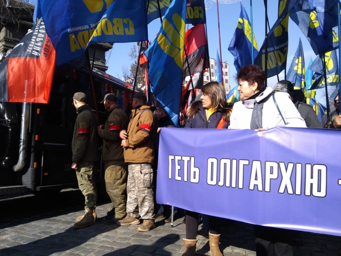 Организовали мероприятие партии "Свобода", "Национальный корпус" и "Правый сектор". Они будут требовать деолигархизации Украины.