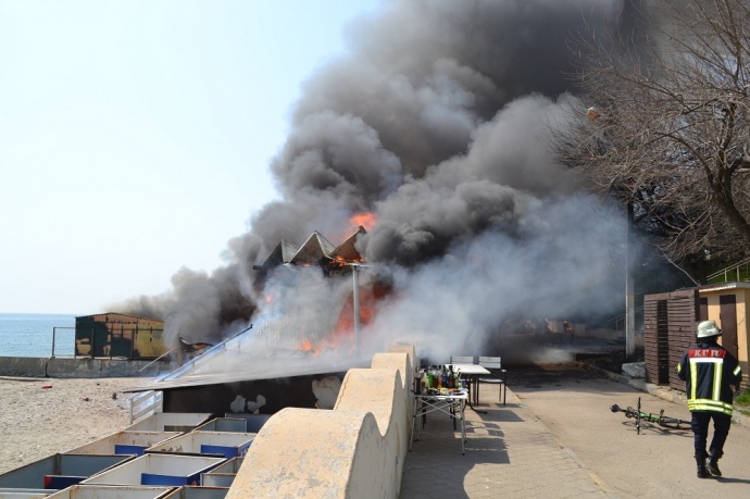 Как сообщалось, в пятницу между 10 и 11 часами на одесском пляже в районе 13-й станции Большого Фонтана загорелся ресторан "Песок".