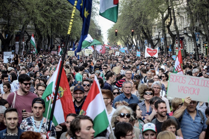 Huge crowd marching in Budapest and yelling "regime change" #Hungary pic.twitter.com/OzWYzmWANP
