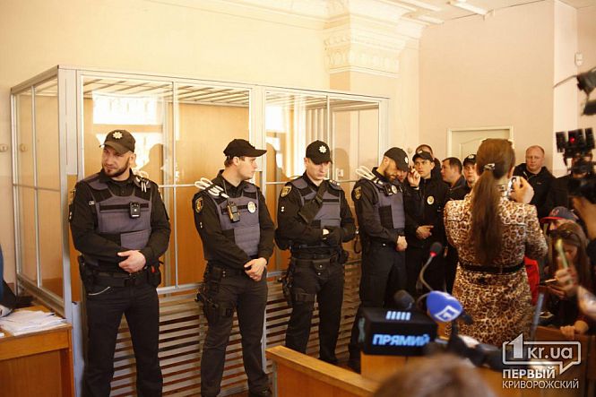 Мужчину в сопровождении конвоя и полиции доставили в Саксаганский суд Кривого Рога, где впоследствии наладили видеосвязь с Бабушкинским судом Днепра.