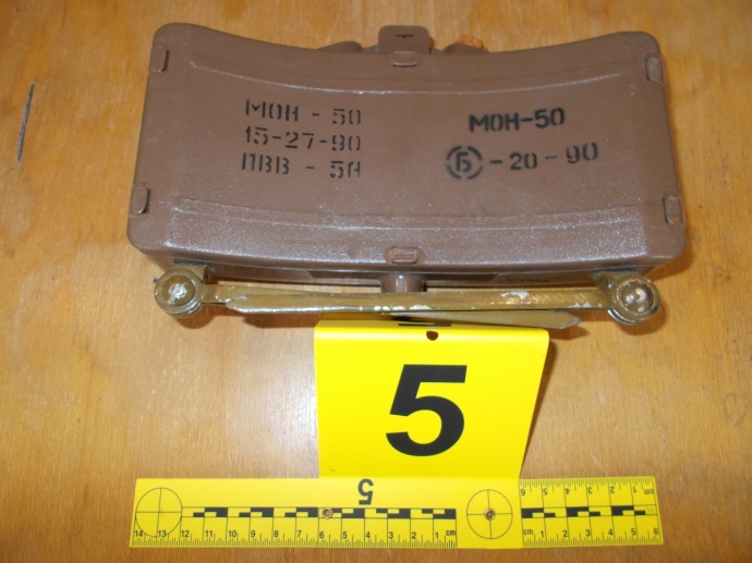 Отмечается, что сотрудники управления по расследованию преступлений, совершенных на временно оккупированных территориях ГПУ вместе с военнослужащими ВСУ обнаружили в зоне АТО 4 противопехотные мины МОН-50 (1990 г.в.), 1 ручную противопехотную оборонительную ударно-дистанционную гранату (рус. РГО) 2 ударно-дистанционные запала (рус. УЗИ, 1992 и 1993 г.в.) к гранате "РГО", реактивный пехотный огнемет РПО "Шмель".