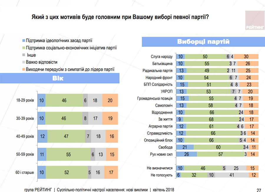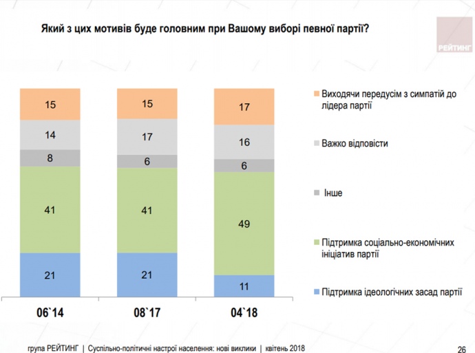 Исходя из симпатий к лидеру, выбирают 17%, по идеологическим принципам – 11%.