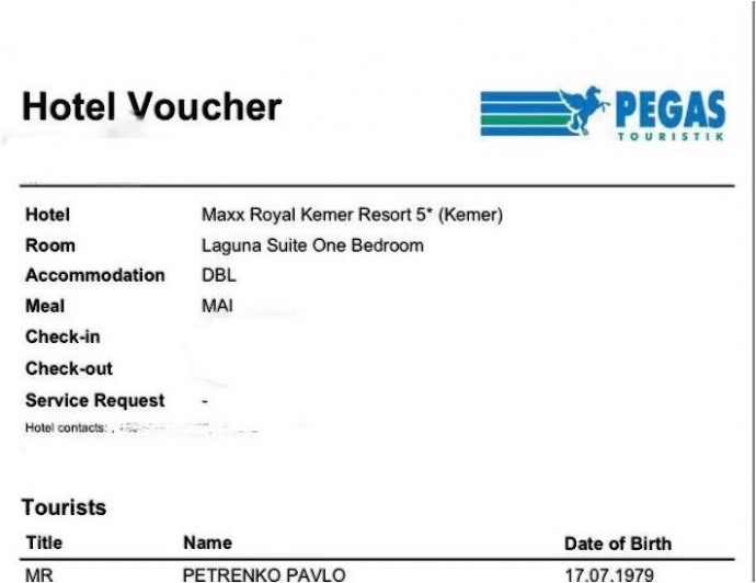 "Нет, не снимал и не снимаю никаких вилл за 3000 евро в сутки. Сплошная глупость арендовать номера такой стоимости. Остановились в номере с выходом к бассейну, что подтверждается ваучером, фото которого добавляю специально для автора"псевдорасследования", - подчеркнул он.