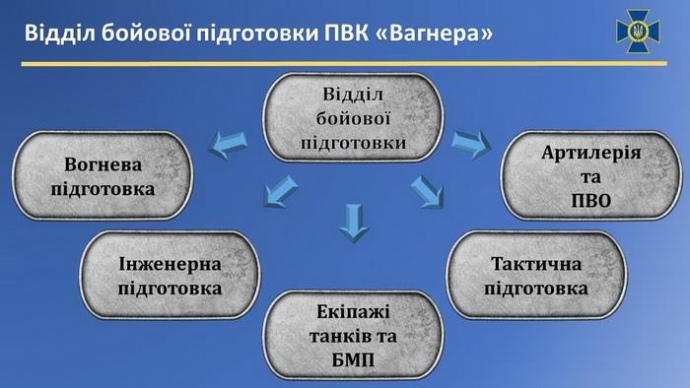 В СБУ говорят, что также установили личности 26 российских офицеров, с 2014 года "командированных" как инструкторы по боевой подготовке в ЧВК "Вагнер". Они обеспечивали учения "частной армии Путина" по тактической, огневой, инженерной и артиллерийской подготовке, обучение экипажей танков, БМП, БТР и ПВО.