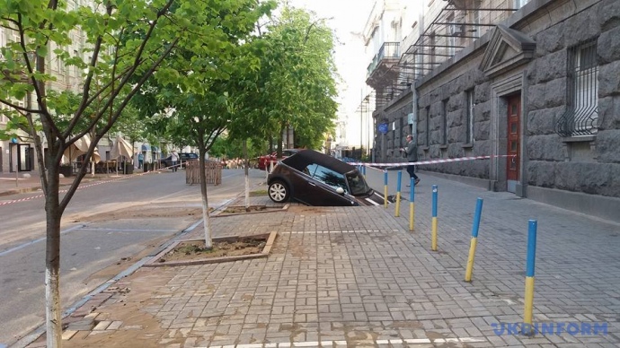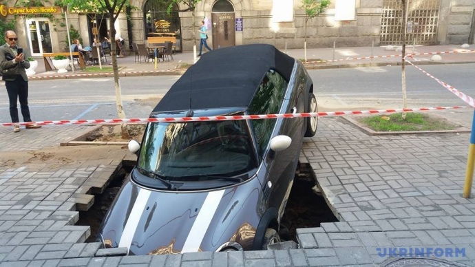 В центре Киева кабриолет провалился под землю