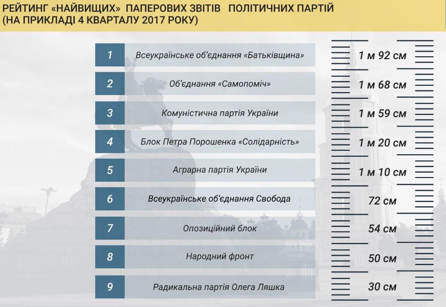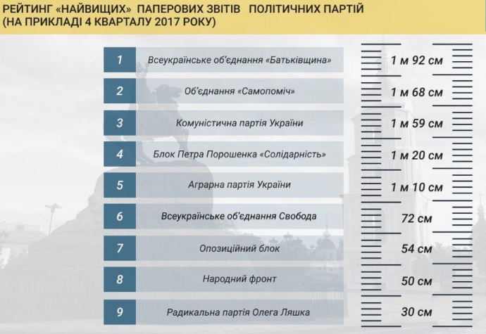Кроме всего прочего, НАПК вычислила, что у "Батькивщины" был самый толстый бумажный отчет, а у "Радикальной партии" – самый тонкий.