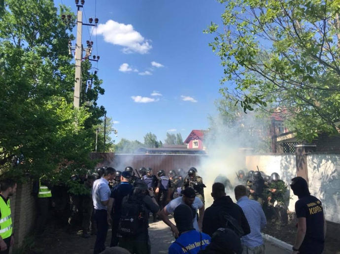 "Националистические силы отправились в поместье Левочкина, однако встретили сопротивление правоохранителей на входе. Националисты преодолели сопротивление и вошли на территорию кооператива", – говорится в сообщении.