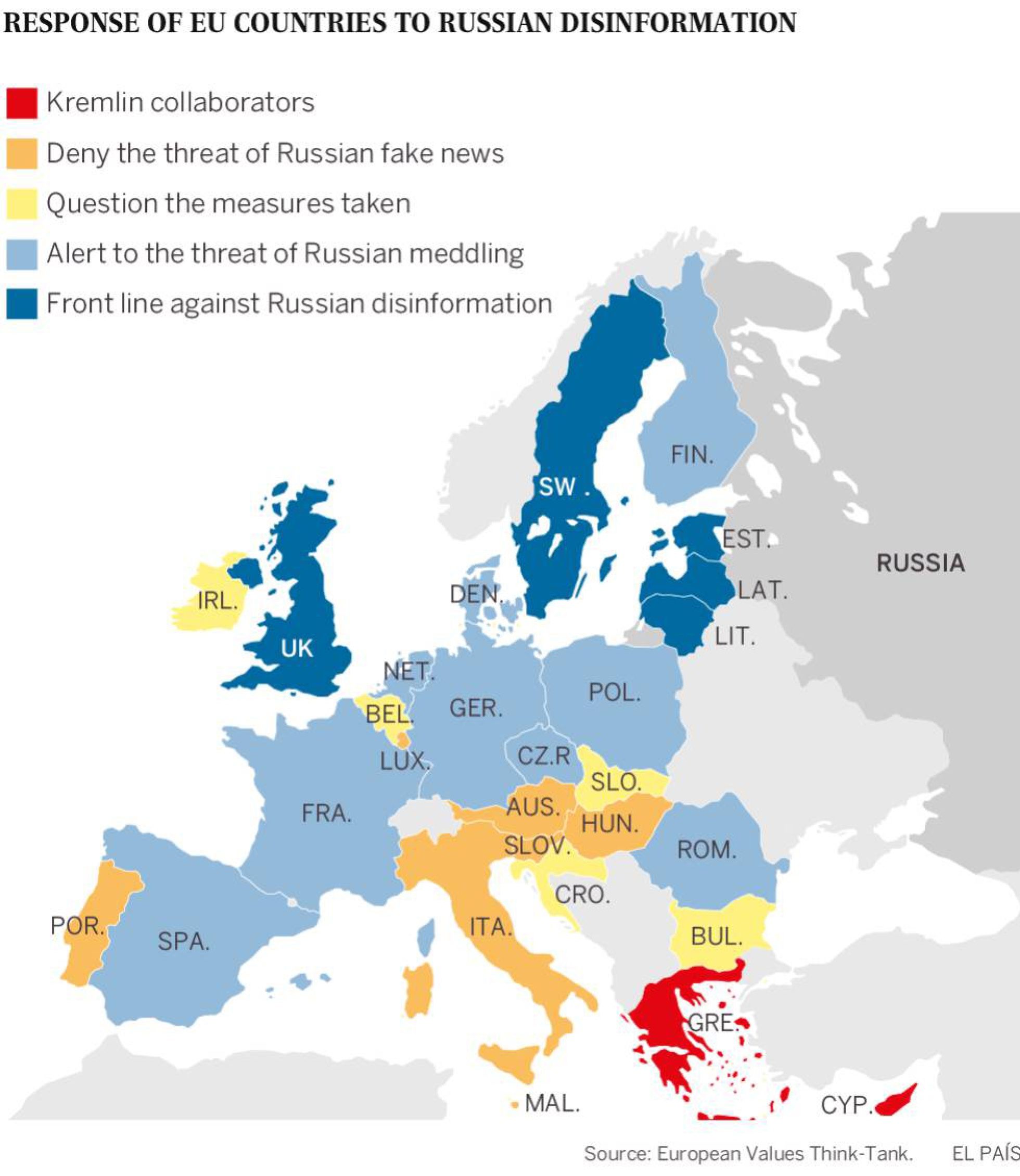 К странам, которые не приняли конкретных мер для противостояния дезинформации России, отнесли Словению, Бельгию, Ирландию, Болгарию и Хорватию.