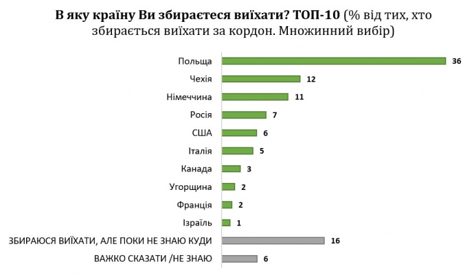 Так, страна, куда собирается наибольшая доля среди желающих выехать за границу с целью длительного пребывания - Польша (36%).