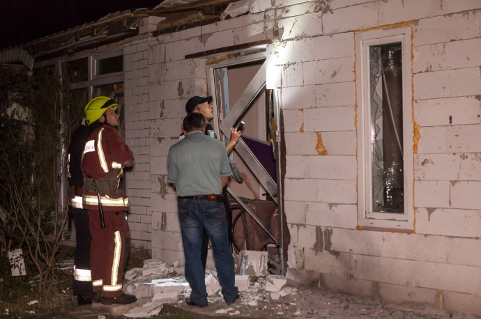 На месте спасателями установлено, что обломками неизвестного взрывного устройства повреждены окна и фасад одноэтажного отдельно стоящего здания кафе на площади 10 кв.м.