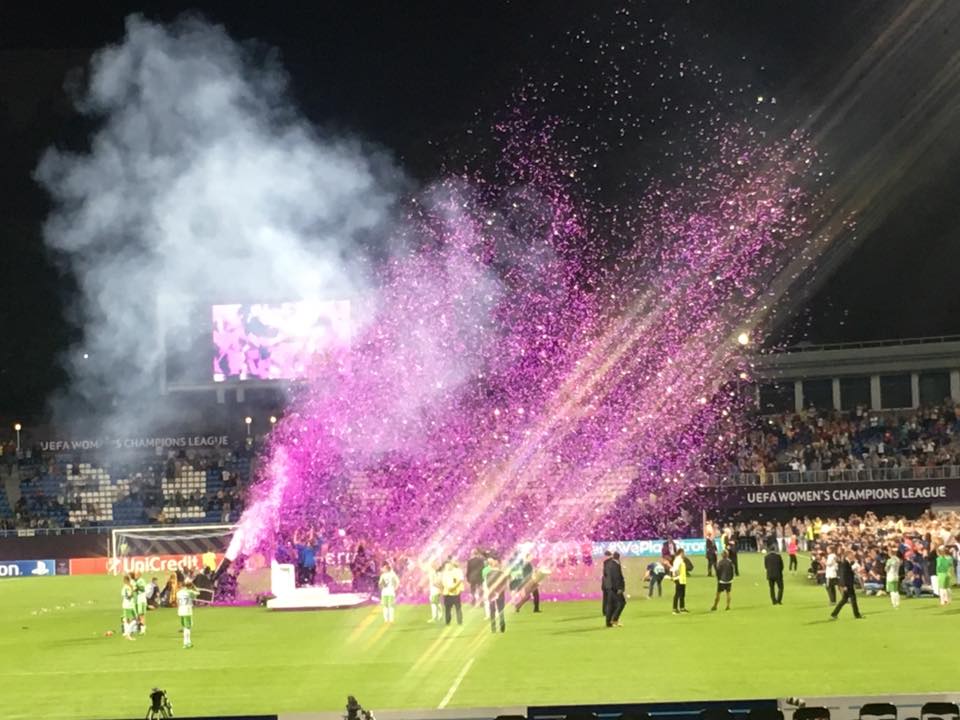 Логотип "Газпрома" сохранился в оформлении стадиона имени Лобановского в Киеве, где 24 мая состоялся Финал женской Лиги чемпионов УЕФА.