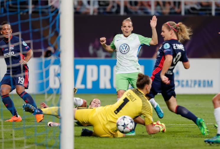 Матч между "Вольфсбургом" и "Лионом" завершился победой французской команды.