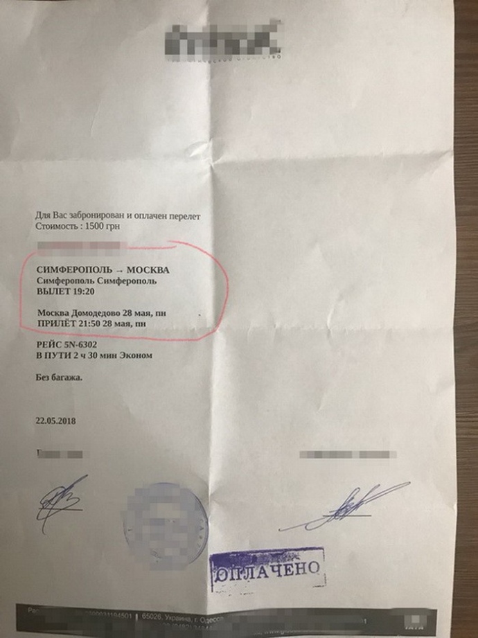 Сотрудники Службы безопасности в Одесской области совместно с прокуратурой АР Крым и Нацполициею блокировали незаконную продажу авиабилетов на рейсы из территории России на временно аннексированный Крым.