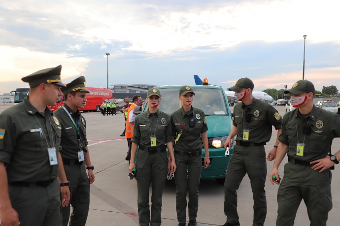 В "Жулянах" сотрудники украинской службы были с красно-белыми щеками, в "Борисполе" - с сине-белыми.