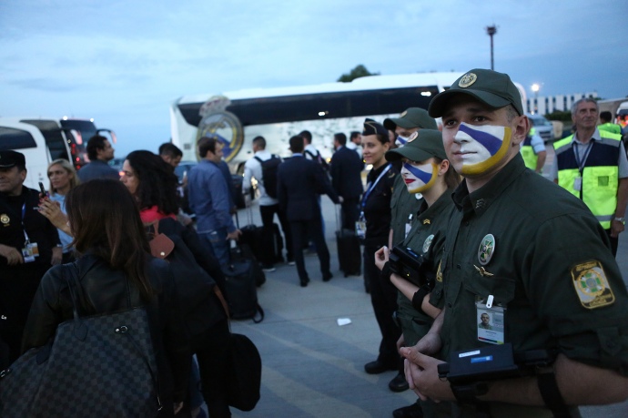 Финалистов ЛЧ в аэропорту встречали разрисованные пограничники