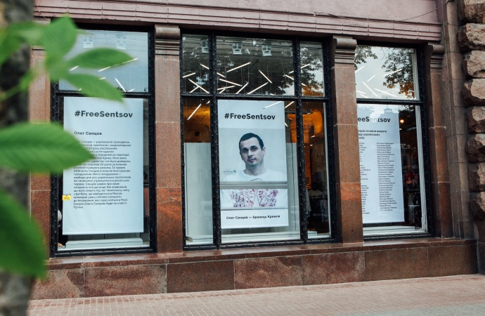 "Наши витрины - это наш голос. Они выходят на главную улицу столицы, мимо проходят тысячи людей - как украинских, так и иностранных граждан. Мы изменили витрины, чтобы выразить свою позицию, поскольку Сенцов - наш соотечественник, незаконно осужденный в России к 20 годам заключения, объявил голодовку", - говорится в заявлении.
