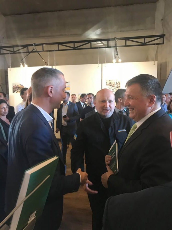 В частности на презентацию приехал премьер Владимир Гройсман, экс-премьер Арсений Яценюк, министр юстиции Павел Петренко, министр финансов Александр Данилюк, секретарь СНБО Александр Турчинов, экс-глава АП Борис Ложкин и министр экологии Остап Семерак.