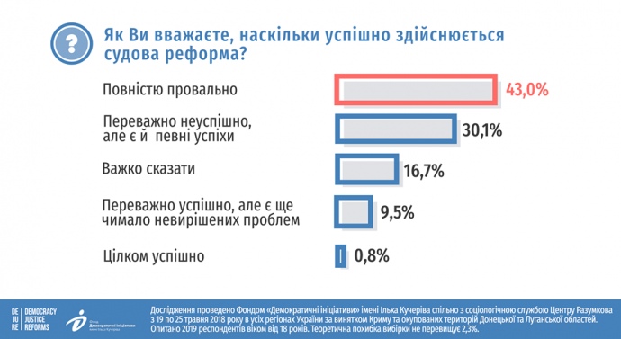 73% граждан считают ход судебной реформы в Украине неуспешным, причем 43% считают ее полностью провальной.