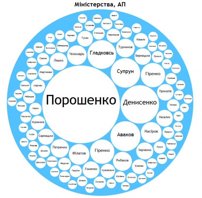 В Администрации президента лидирует Петр Порошенко. Он задекларировал на себя и семью 822,2 млн грн активов (включая наличные), 16,9 млн грн доходов за прошлый год, 6 га земли и 4525 кв м недвижимости.