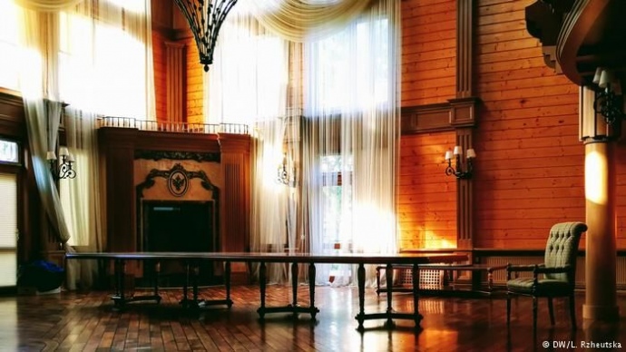 В финском срубе есть стол на 18 персон, три стула, диван, камин и кованая люстра. Это все, что осталось (и зафиксировано ГПУ в акте приема-передачи имущества на хранение ОО).