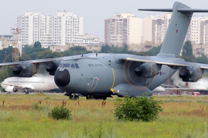 Четырехмоторный турбовинтовой гигант А400 Atlas королевских ВВС Великобритании доставил в Одессу бойцов морского спецназа для участия в совместных военно-морских учениях Sea Breeze-2018.