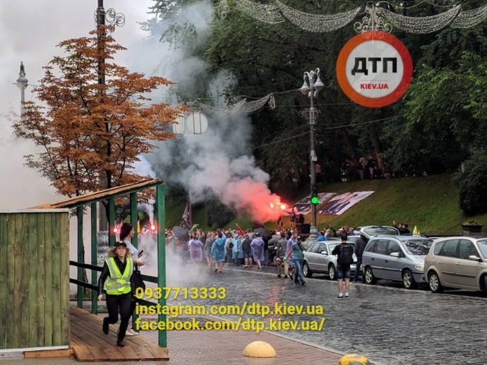 В центре столицы владельцы автомобилей с иностранной регистрацией зажгли дымовые шашки и файеры.