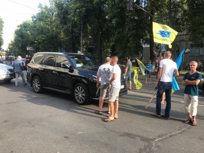 "Евробляхари" блокируют проезд авто по Институтской и выезд авто Кабмина по Садовой.