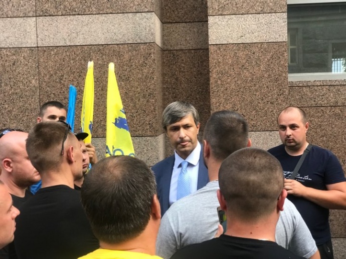 Митингующие скандируют "Парубий", требуя встречи с председателем Рады.