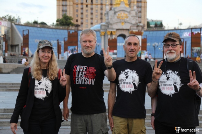 К ней присоединились лидеры крымскотатарского народа Ильми Умеров и Ахтем Чийгоз и сестра Олега Сенцова Наталья Каплан.