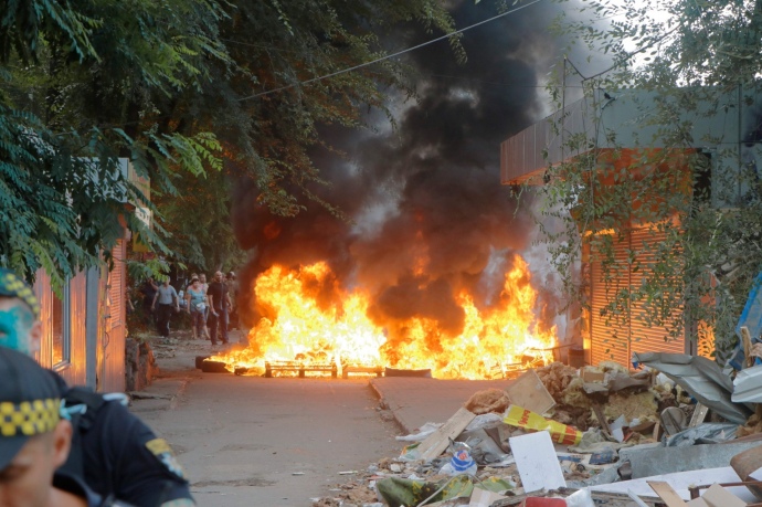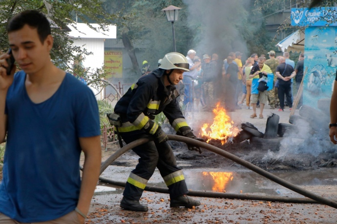 В частности, неизвестные бросали камни, использовали бить и жгли шины.
