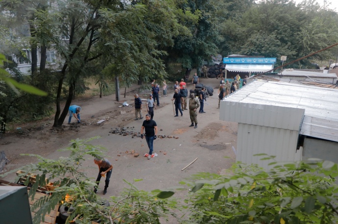 В Днепре коммунальщиков, которые сносили МАФы, забросали камнями