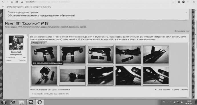 Позже Кутьин обнаружил, что его макеты оружия продаются в интернете.