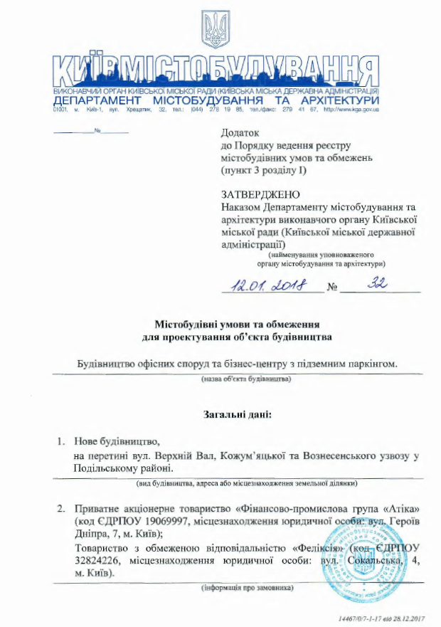 Вместе с тем, "Атика" и "Феликсия" пытались получить согласие Киевсовета на разработку проектов землеустройством по отводу указанных 0,52 га под строительство жилищно-офисного комплекса.